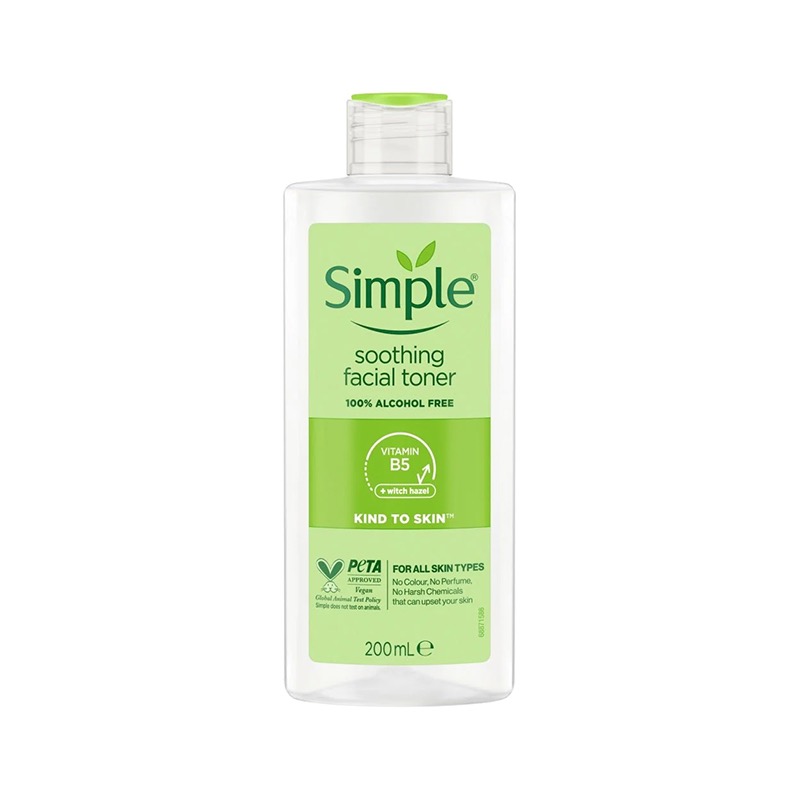 تونر سیمپل مدل Soothing یکی از محبوبترین محصولات روتین پاکسازی برای پوستهای حساس، خشک و دهیدراته است. این تونر با فرمولاسیون کاملاً ملایم و فاقد الکل، پارابن، عطر، رنگ و ترکیبات حساسیتزا طراحی شده تا بدون ایجاد سوزش یا کشیدگی، پوست را آرام کرده و تعادل طبیعی آن را حفظ کند.